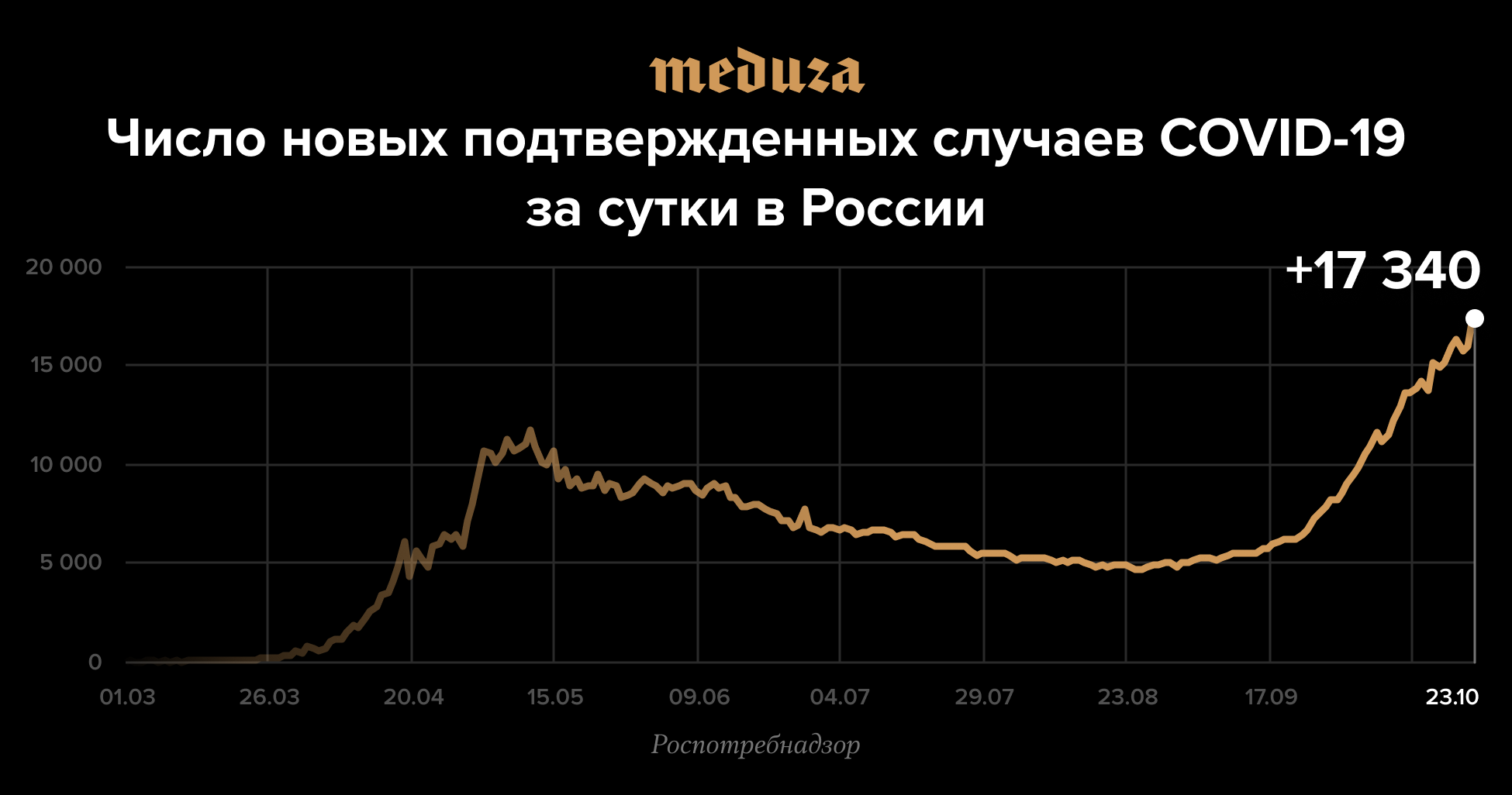 Заболел лидер «Справедливой России» Сергей Миронов. Главный пульмонолог Минздрава Сергей Авдеев получил орден Пирогова. Награду вручил премьер-министр Михаил Мишустин, которого лечил Авдеев. Губернатор Курганской области Вадим Шумков ушел на самоизоляцию: он контактировал с заболевшим. В Хабаровске запретили приглашать гостей на регистрацию брака в ЗАГС. В Ингушетии до 1 декабря запретили массовые мероприятия. В Москве опечатали один из крупнейших клубов — «Адреналин Стадиум». Официальная формулировка — «за нарушения антикоронавирусных мер». Сегодня в клубе должен был пройти концерт группы «Дайте танк (!)»
