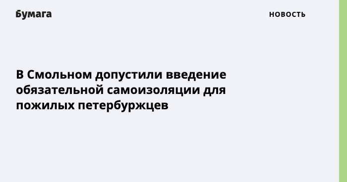 В Смольном допустили введение обязательной самоизоляции для пожилых петербуржцев