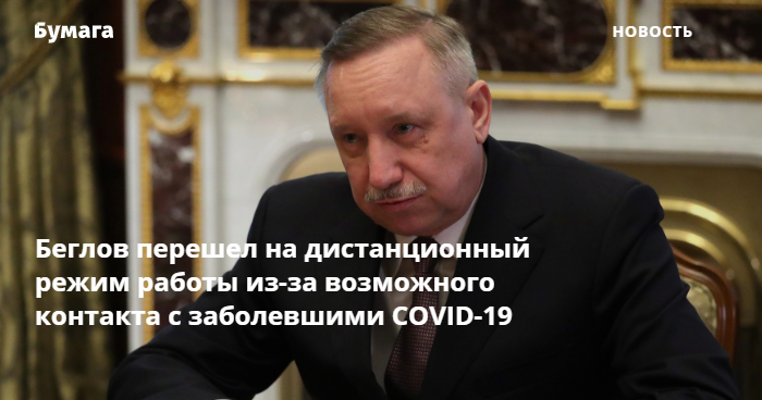 Губернатор Петербурга Александр Беглов перешел на дистанционный режим работы из-за возможного контакта с людьми, получившими положительный тест на коронавирус. Об этом сообщает пресс-служба Смольного.