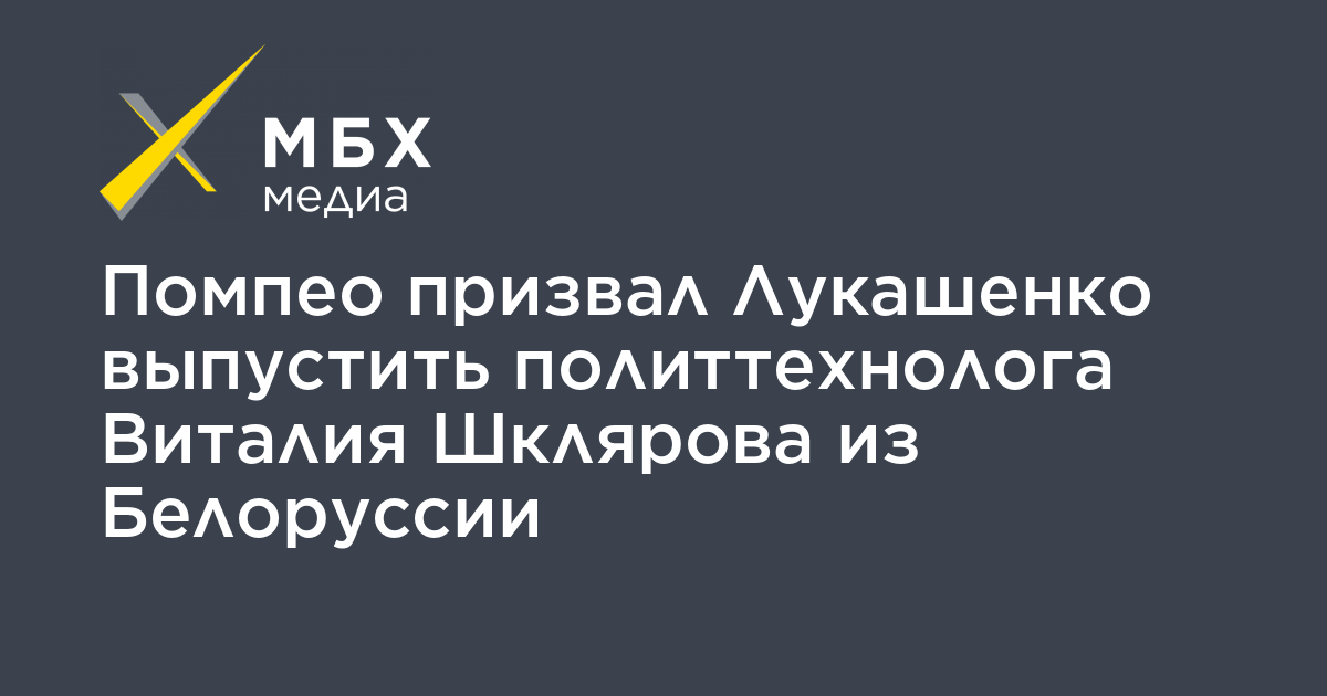 Госсекретарь США Майк Помпео во время телефонных переговоров призвал Александра Лукашенко разрешить политтехнологу Виталию Шклярову покинуть территорию Белоруссии. Об этом сообщает ТАСС со ссылкой на Госдепартамент США.