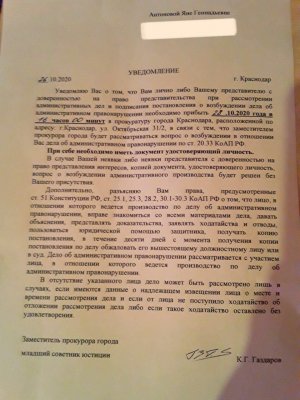 Силовики пришли к активистке домой и вручили ей уведомление о «необходимости прибыть» в прокуратуру, где будут решать вопрос о возбуждении против Антоновой нового административного дела.