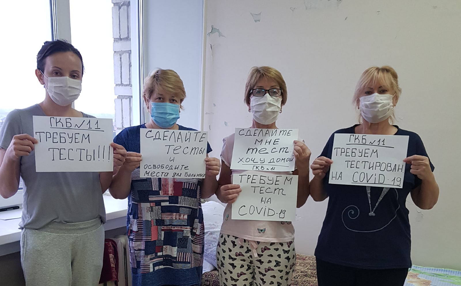 Пациенты новосибирской больницы №11 устроили пикет с требованием сделать им тесты и освободить места в ковидном госпитале для более тяжелых больных.