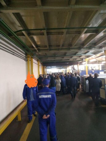 8:35 МЗКТ. Рабочие пошли маршем по цехам, собирают коллег.