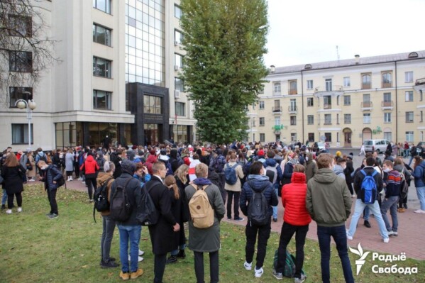 13:00 Студенты продолжают собираться возле БГУ.