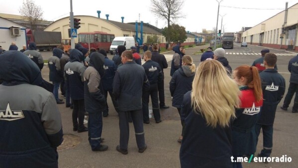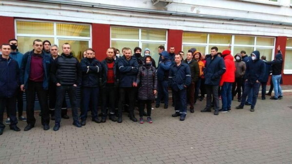 8:45 МТЗ, кузнечный цех. Рабочие вышли, хлопают и скандируют «Далучайся».