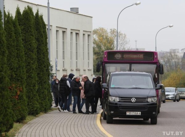 — Кого-то задерживали на территории завода, кого-то на подходе около проходной. Сейчас всех выпускают по одному. Протоколов по 23.34 не составляют. Однако составляют протоколы опроса и задержания. У некоторых забрали телефоны, — говорят выходящие из здания РОВД мужчины. Сюда же приехал автобус предприятия, который заведет рабочих на предприятие.