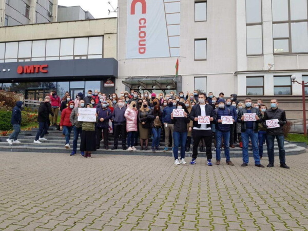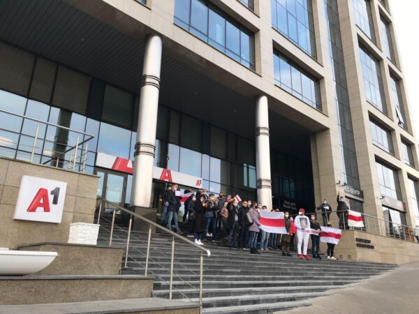 12:20 Сотрудники мобильного оператора А1 вышли в поддержку бастующих.