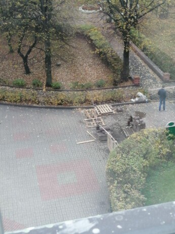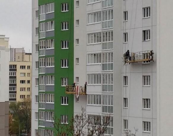 11:21 Строители на улице Леонида Беды в Минске.