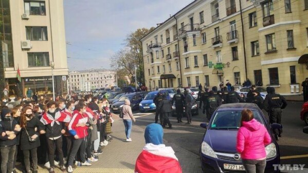 13:38 Учащиеся 3-ей Гимназии Минска вышли поддержать бастующих и студентов.
