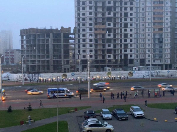 9:02 В некоторых частях города — цепи солидарности и перекрытия дорог. На фото — улица Маяковского, Михалово и Грушевка.