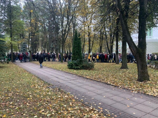 13:34 Так выглядит акция солидарности возле офиса А1. Пишут, что людей становится все больше.