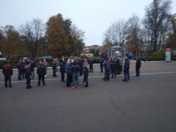 8:54 Гродно Азот стоит за проходной. Народ подтягивается туда, к оранжевым каскам присоединяются белые.