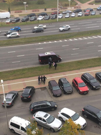 8:57 На Аэродромной перекрыли дорогу. В нескольких районах Минска, были задержания.