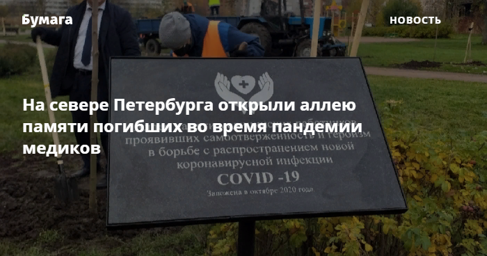 В саду «Прометей» на пересечении проспекта Просвещения и улицы Ольги Форш открыли аллею памяти медиков, погибших во время пандемии коронавируса.