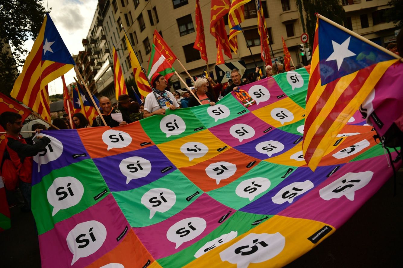 Alvaro Barrientos / AP / Scanpix / LETA Сторонники независимости Каталонии во время митинга в Бильбао. 16 сентября 2017 года