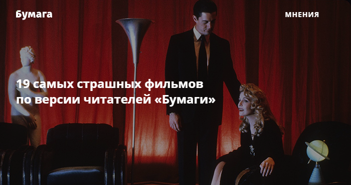 К Хеллоуину «Бумага» попросила читателей и членов Клуба друзей поделиться фильмами и сериалами, которые напугали их. Вот список картин — от «Черного зеркала» и «Хижины в лесу» до приквела к «Твин Пиксу» и мультфильма «Халиф-аист».
