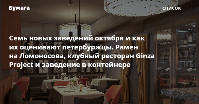 Читайте также про новые заведения сентября. Другие новости об открытиях в Петербурге ищите в рубрике «Бумаги» «Новые места».