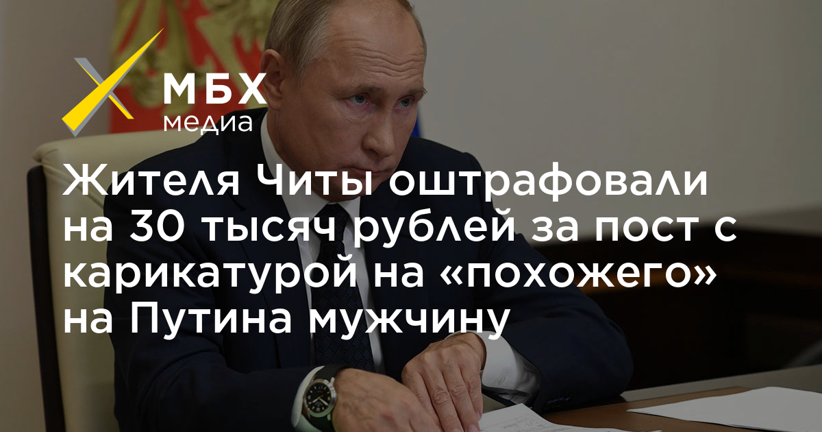 Центральный районный суд Читы оштрафовал на 30 тысяч рублей местного жителя Бориса Витковского, который разместил в одной из социальных сетей пост с карикатурой на мужчину, «похожего» на Владимира Путина. Соответствующее постановление «МБХ медиа» обнаружило в картотеке суда.