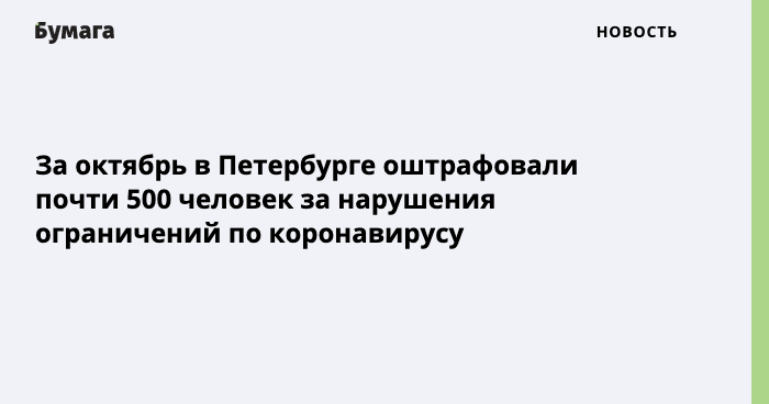 За октябрь в Петербурге оштрафовали почти 500 человек за нарушения ограничений по коронавирусу