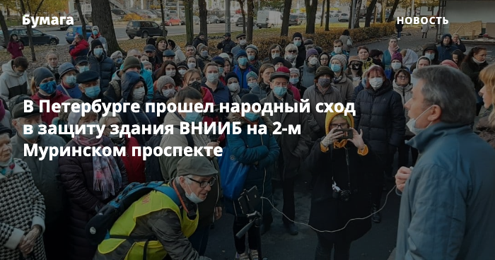 В Петербурге прошел народный сход в защиту здания ВНИИБ на 2-м Муринском проспекте