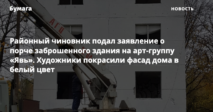 Районный чиновник подал заявление о порче заброшенного здания на арт-группу «Явь»