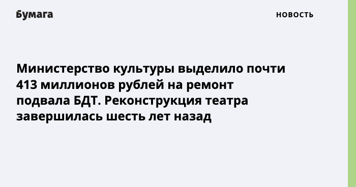 Министерство культуры выделило почти 413 миллионов рублей на ремонт подвала БДТ