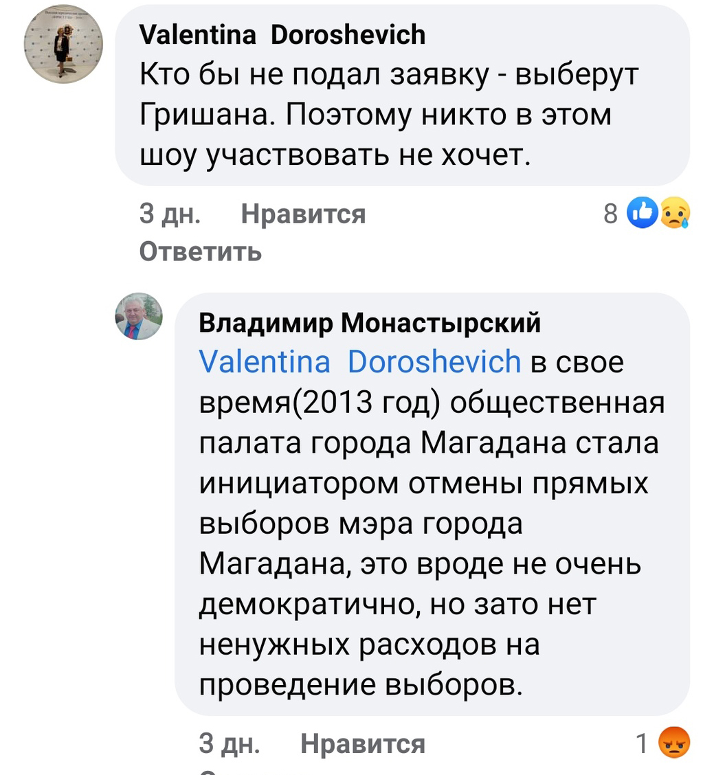 Впрочем, многие пользователи соцсетей полагают, что для томского бизнесмена участие в подобных выборах всего лишь своеобразный пиар его бизнеса. А мэром Магадана в любом случае останется Юрий Гришан.
