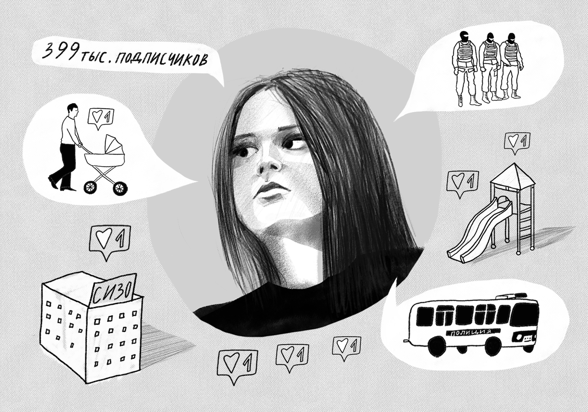 Иллюстрация: Ксения Анненко для ТД — Тебе комфортно вести блог на такую негламурную тему, как суды и СИЗО, в соцсети, где все хотят смотреть на красивую успешную жизнь?