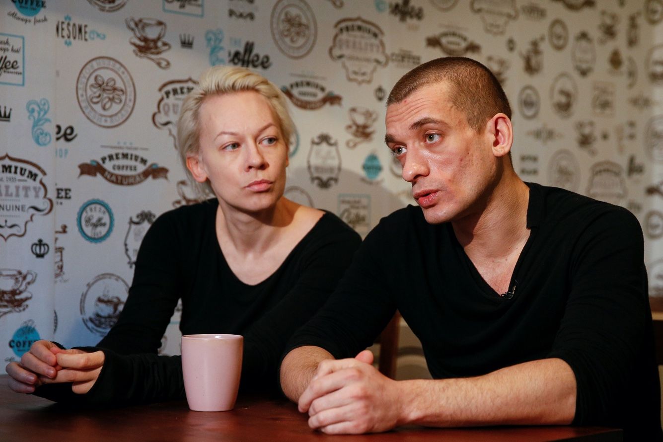 In France, we were separated for 11 months. I started to understand the level of cruelty we had reached. He beat me every day. “My body really was black [and blue], my lower body was black, my legs and everything else, it hurt to breathe.” When you’re beaten up, it’s one feeling, but when you're raped — it’s completely different. He never touched our girls, he was a loving father. “Even in the most macabre personal stories, he always thought projectively […] He warned me that he would act as cruelly as possible with me.” The moral breakdown began almost immediately. He didn’t like my son from my first marriage. “I gave up my child in favor of a new life, a new love.” “He’s actually an intellectual. He’s smart, an introvert.” Things changed after he got out of Butyrka prison. We acted like the perfect couple, no one knew. We lived parallel lives. “In the first I was stupid fool, in the second, a respected partner, friend, and lover.” I was involved in all the actions [Pavelnsky’s performance art], I curated everything. “Wherever you can’t see me, I’m there.” I wanted to prove to Petr that I’m worthy of him, to show that I’m as cool as he is. I’m not urging people not to believe the actress [Anastasia Slonina], but if I were to speak to her now, I would ask her: “Why did you ask Petr to cut your hands?” She provoked Petr deliberately, she seemed to like it. “Petr flew to such a height that he soared above human conventions in general, above everyday life.” I was quiet all these years, but when it became unbearable I decided to speak, to say farewell to the past. “If someone sees this as betrayal, so be it.”
