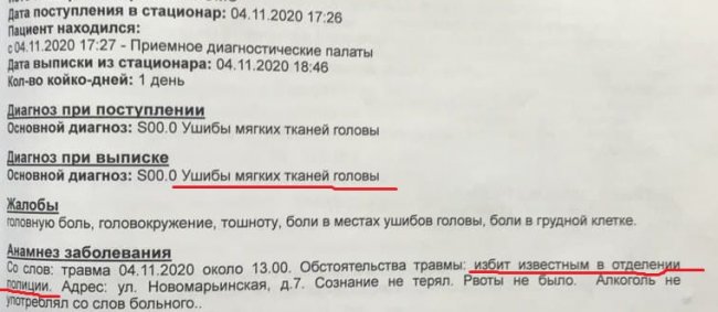 В день задержания Михайлова отвозили в городскую больницу имени В. П. Демихова (бывш. больница № 68), где ему диагностировали ушиб мягких тканей головы. В распоряжении ОВД-Инфо есть выписка из больницы, согласно которой Михайлов «избит известным в отделении полиции».