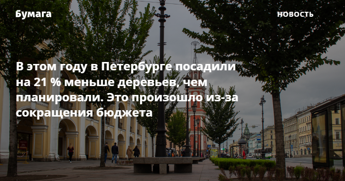 Читайте также материал «Бумаги» о том, кто и как борется за сохранение деревьев в Петербурге и почему в городе так мало зелени.