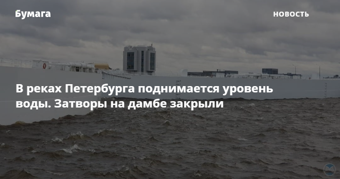 В реках Петербурга начинает подниматься уровень воды. Затворы дамбы закрыли около 16:00, сообщает пресс-служба КЗС.