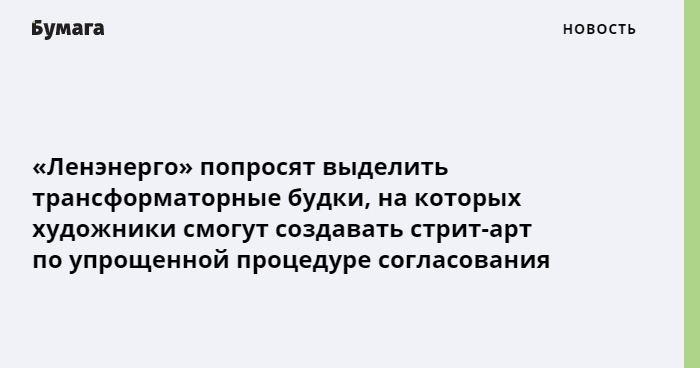 Художники смогут создавать на будках стрит-арт по упрощенной процедуре согласования. В чем именно она будет заключаться, пока не сообщается. Как пишет «Фонтанка», «Ленэнерго» попросят выделить 10 подстанций, еще несколько объектов запросили у городских администраций.