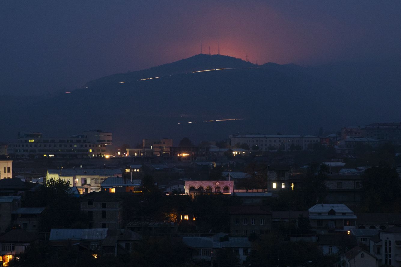 Stanislav Krasilnikov / TASS / Scanpix / LETA The view of the fighting in the Shusha region (in the mountains) as seen from Stepanakert on the night of November 5