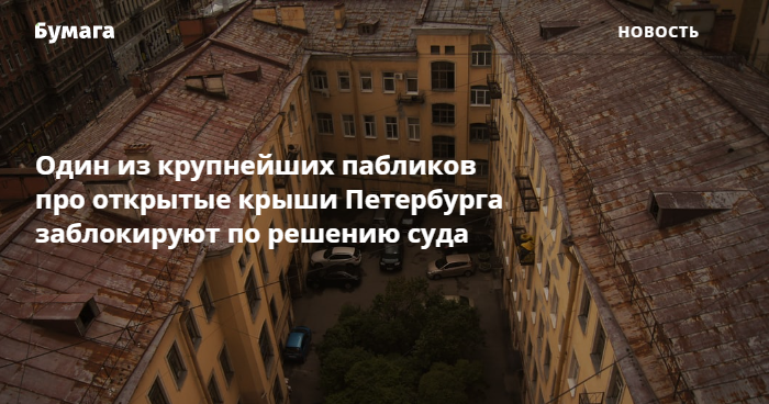 Крупный паблик про открытые крыши Петербурга заблокируют