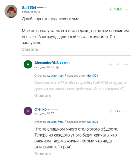 Многие пользователи откровенно злорадствовали из-за слива видео и заявляли, что Дзюбе не место в сборной и что негативное отношение он заслужил.