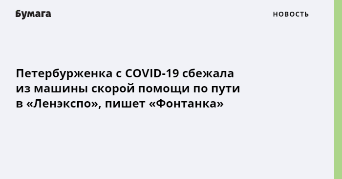 По данным издания, скорую помощь женщине вызвала подруга, 7 ноября петербурженку везли во временный госпиталь в «Ленэкспо», но она сбежала. Сейчас местонахождение женщины неизвестно, ее ищут сотрудники полиции.