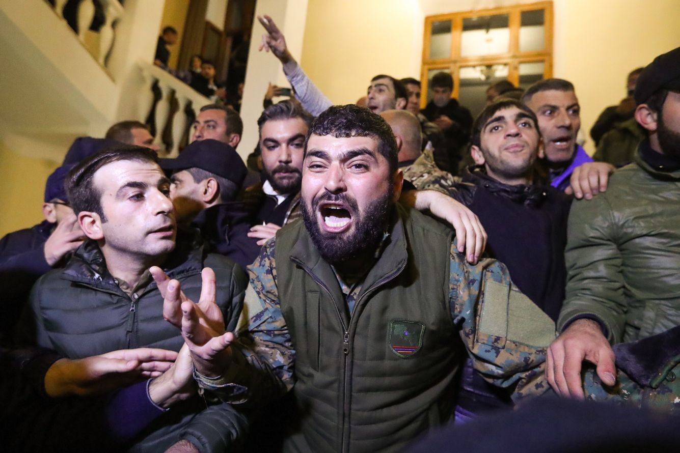 Vahram Baghdasaryan / Photolure / Reuters / Scanpix / LETA Protesters storm Armenia’s House of GovernmentArtem Mikryukov / Reuters / Scanpix / LETA Protesters outside Armenia’s House of GovernmentStanislav Krasilnikov / TASS / Scanpix / LETA Protesters storm Armenia’s House of GovernmentArtem Mikryukov / Reuters / Scanpix / LETA Outside Parliament in YerevanStanislav Krasilnikov / TASS / Scanpix / LETA Protesters outside Armenia’s House of Government who oppose the truce with AzerbaijanDmitry Lovetsky / AP / Scanpix / LETA Police officers outside Armenia’s House of Government, following protests