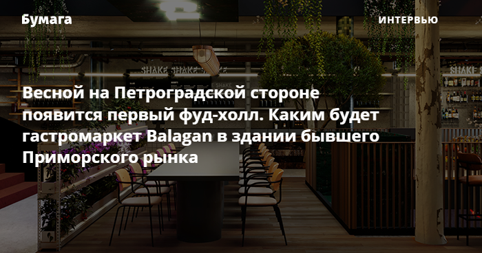 Весной 2021 года в здании бывшего Приморского рынка начнет работу гастромаркет Balagan — первый фуд-холл на Петроградской стороне. Пространство займет более 2 тысяч квадратных метров на трех этажах — там представят 30 гастрономических концепций.