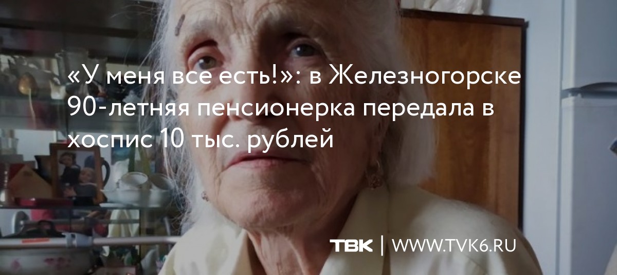 «У меня все есть!»: в Железногорске 90-летняя пенсионерка передала в хоспис 10 тыс. рублей
