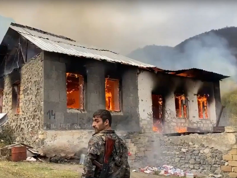 Тем временем армяне из Нагорного Карабаха сжигают свои дома, чтобы они не доставались азербайджанцам.