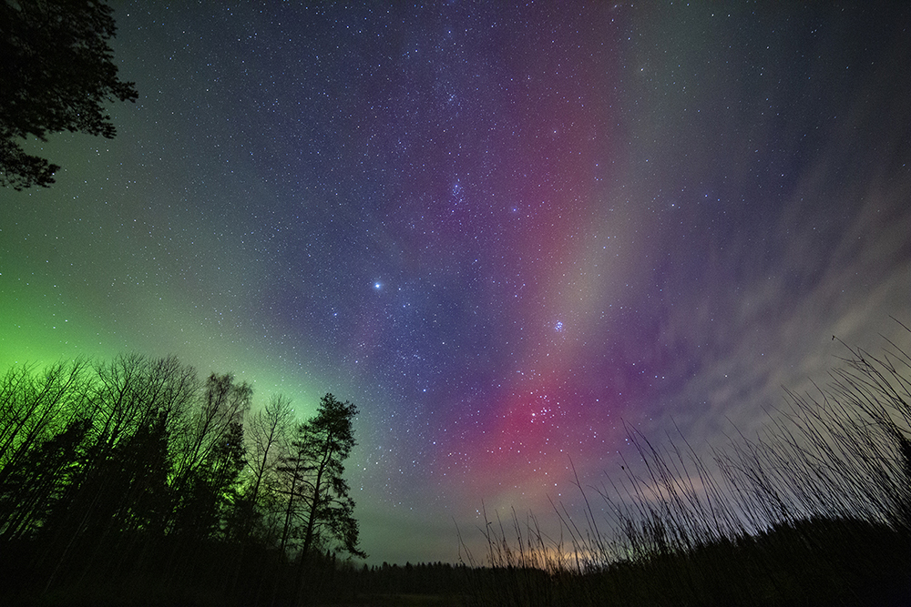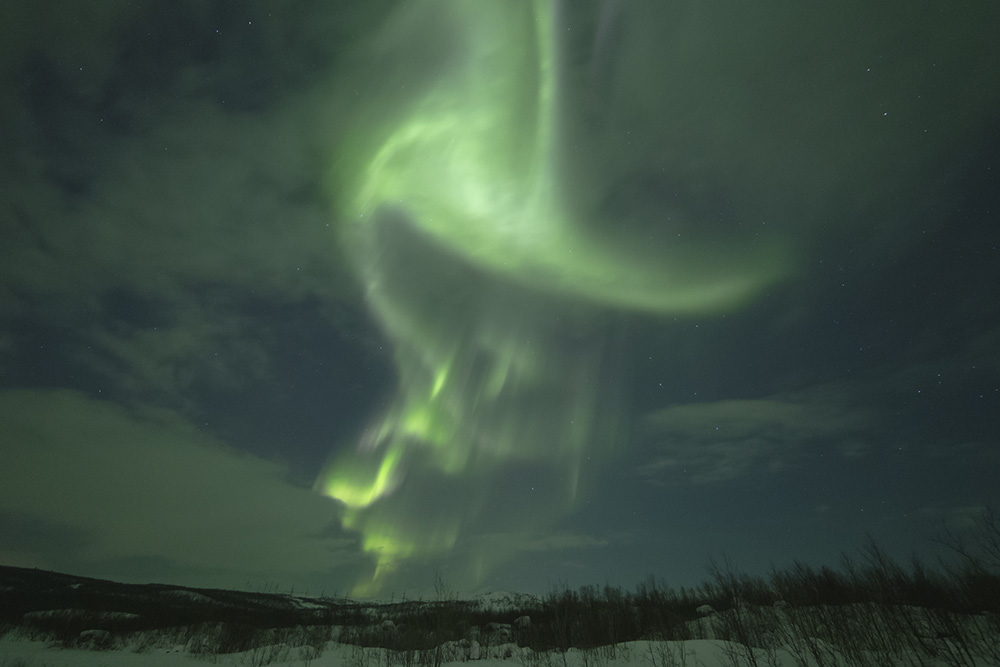 Выбор места очень важен. Во-первых, сложно наблюдать за любыми астрономическими явлениями, когда на небе тучи, поэтому предварительно нужно посмотреть спутники. Есть несколько сайтов, которые показывают зоны облачности на циклоны и антициклоны — они показывают прогноз точнее, чем «Яндекс» или «Гисметео». Во-вторых, северные сияния у нас достаточно низкие, то есть они не над нами, а чуть сбоку, поэтому нужен свободный горизонт. Идеальнее всего подходят озера и поля с видом на север. Например, южные побережья Ладожского озера или Финского залива. Может еще подойти какой-нибудь мыс на северном побережье залива, который уходит далеко вперед, чтобы можно было получить обзор на север. У нас на сайте указано несколько хороших мест для охоты, но, конечно, это не все.
