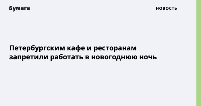 Петербургским кафе и ресторанам запретили работать в новогоднюю ночь