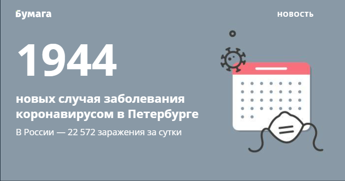 Актуальные новости о распространении COVID-19 в городе читайте в рубрике «Бумаги» «Коронавирус в Петербурге». Следите за развитием ситуации по нашим графикам.