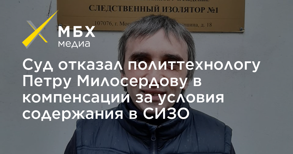 Суд отказал политтехнологу Петру Милосердову в компенсации за условия содержания в СИЗО
