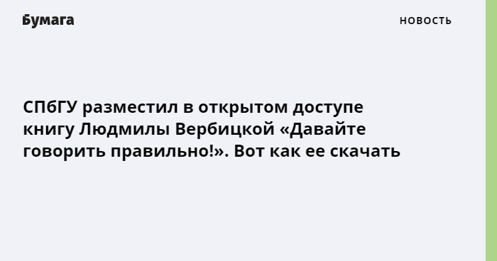 СПбГУ разместил в открытом доступе книгу «Давайте говорить правильно! Трудности современного русского произношения и ударения». Публикация приурочена к филологической конференции, которая посвящена автору справочника Людмиле Вербицкой.