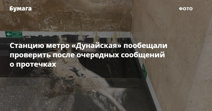 «Метрострой» пообещал проверить станцию петербургского метро «Дунайская» после сообщений в соцсетях о протечках. Об этом пишет «Петербургский дневник» со ссылкой на компанию.
