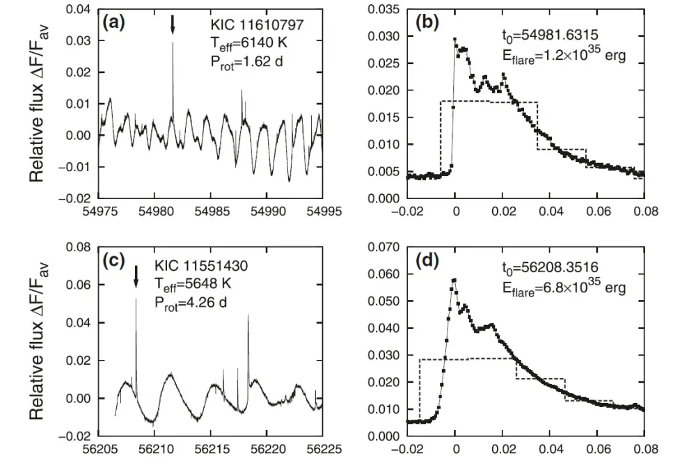 В обстоятельной статье [4] авторы задаются вопросом: есть ли среди «супервспышечных» звезд, обнаруженных «Кеплером», медленно вращающиеся звезды, подобные Солнцу? При этом они использовали данные космического телескопа Gaia, нацеленного на астрометрические измерения и наблюдения на наземном телескопе. Ответ оказался положительным.