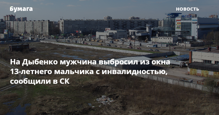 Как сообщает СК, вечером 20 ноября в квартире на улице Дыбенко мужчина взял на руки сына свой знакомой, который «имеет инвалидность, вызванную психическим заболеванием», и перекинул его через оконный проем лоджии, сбросив с третьего этажа.