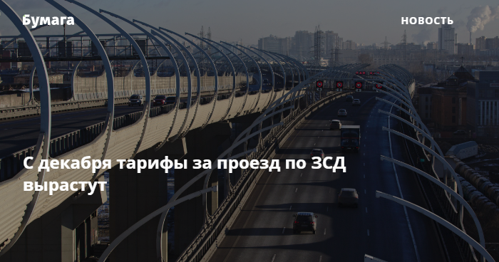 Стоимость проезда по ЗСД вырастет с 1 декабря. Об этом сообщается на сайте «Магистраль северной столицы».